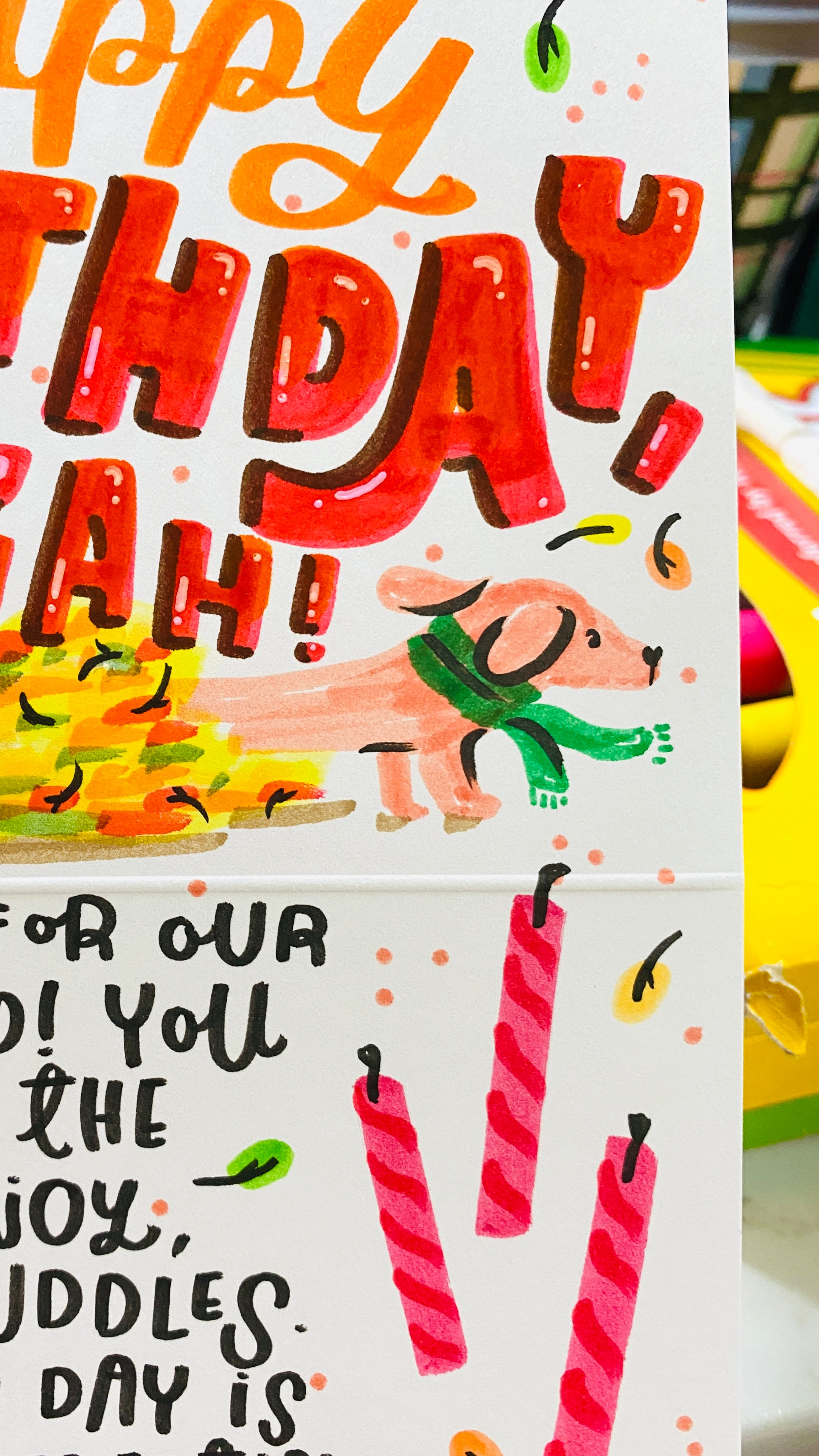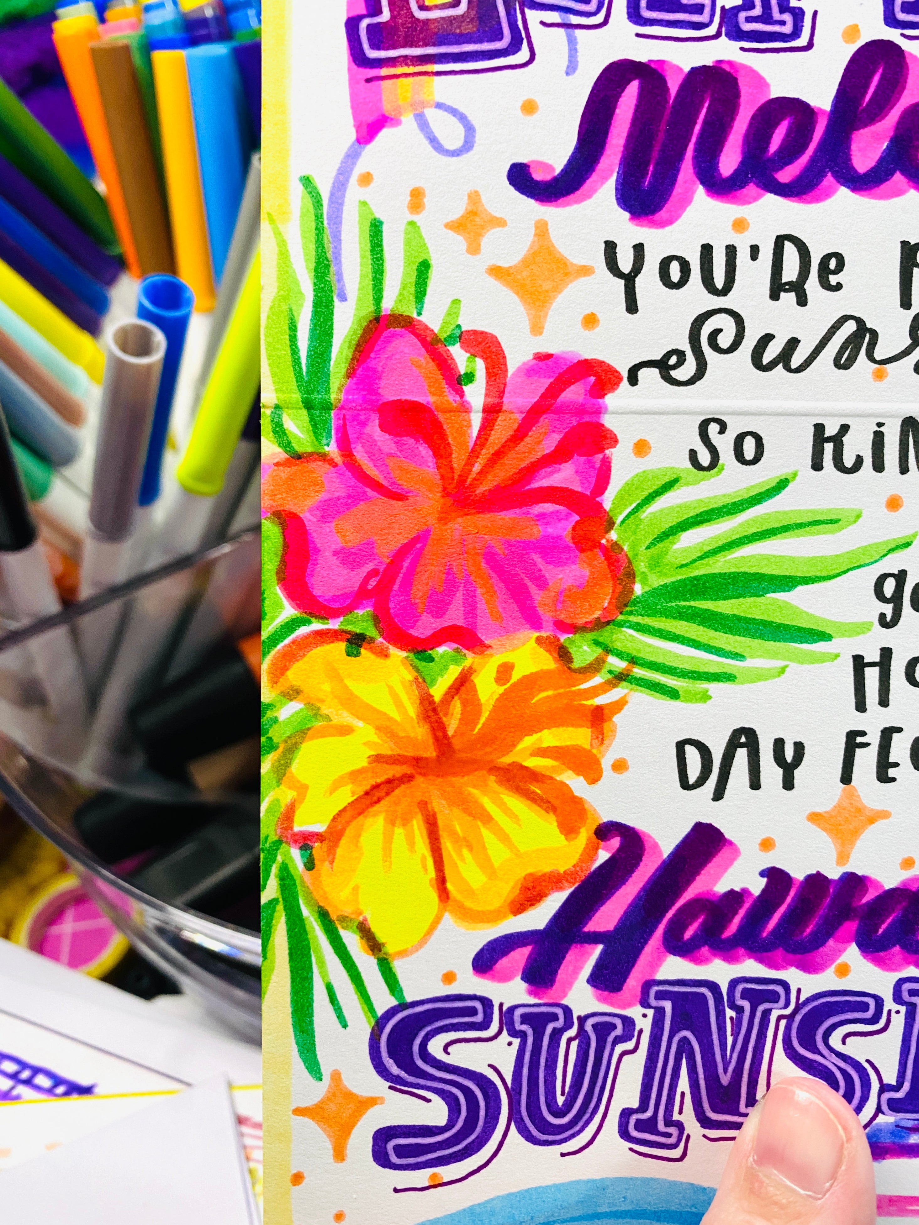 ALWAYS a great job!! Absolutely love every card she's ever done for me. The colors, the fonts ESPECIALLY the drawings. AMAZING.thank you for bringing joy into mine and my friends lives!!
