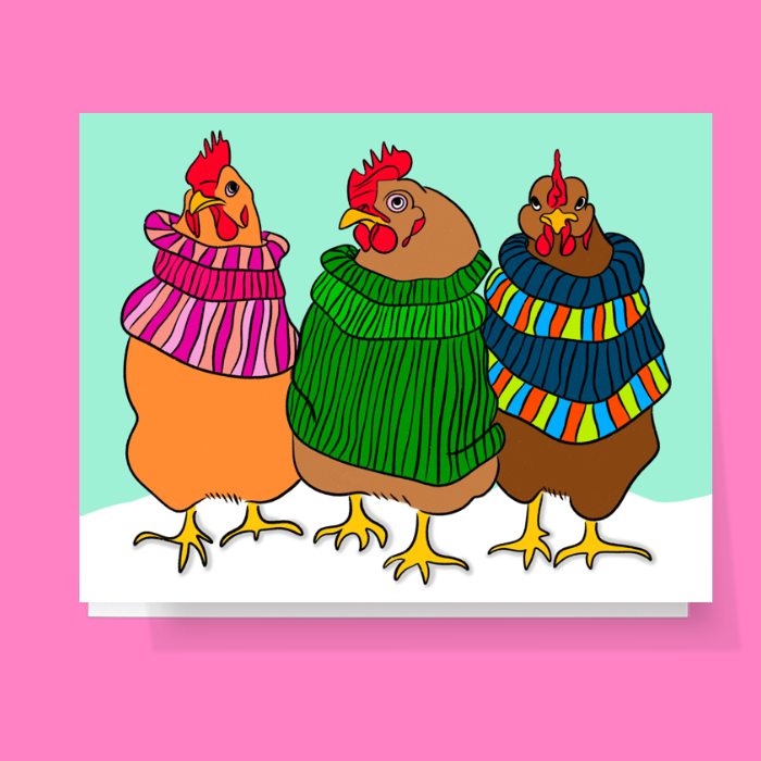 Winter Chickens In Sweaters Card